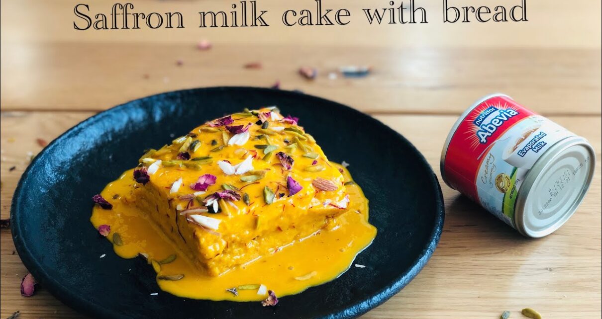 Eggless ~ no bake saffron milk cake | bread recipes | fusion dessert easy & quick with Abevia
