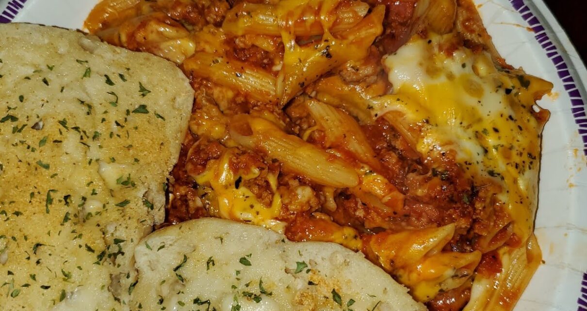 Homemade Pasta Bake with Garlic Bread
