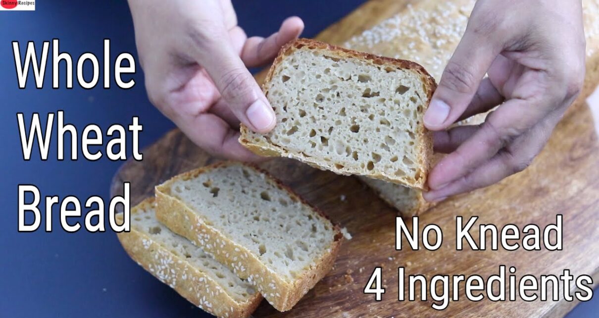 Whole Wheat Bread – No Knead – 4 Ingredients – Atta Bread – No Oil/No Sugar/No Maida |Skinny Recipes