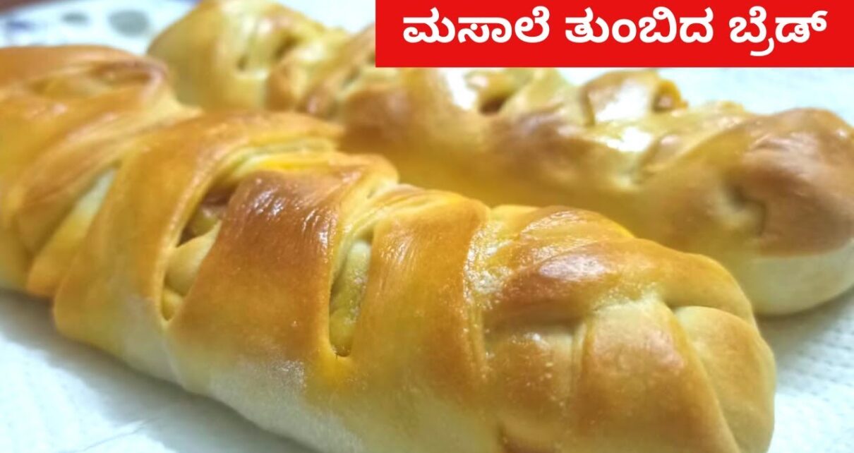 ಮಸಾಲೆ ತುಂಬಿದ ಬ್ರೆಡ್ – ಹೊಸ ರುಚಿ | Stuffed Braided Bread Recipe in Kannada | Baking Recipes